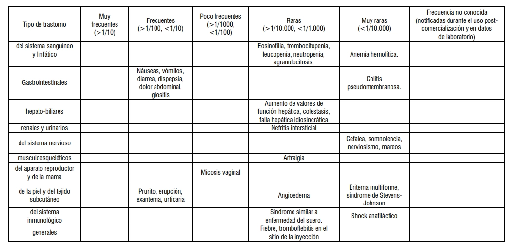 Hipersensibilidad a los componentes de la fórmula, a las cefalosporinas, las penicilinas o a otros antibióticos betalactámicos.