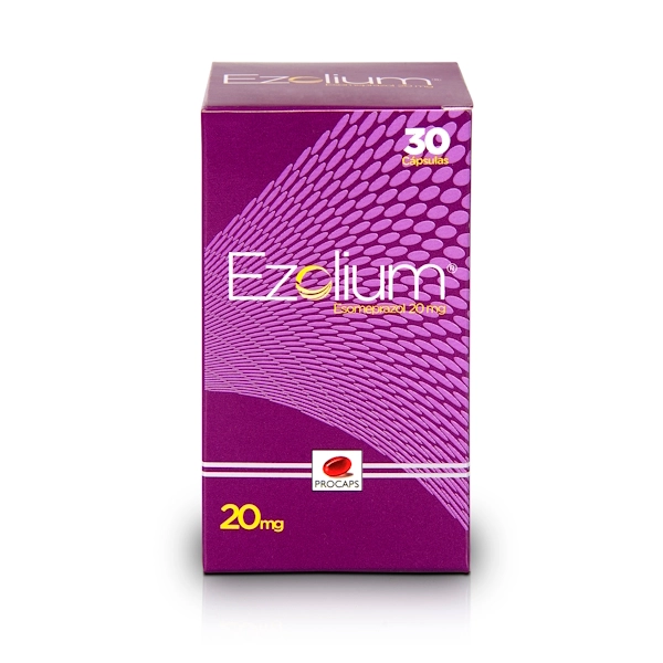 El esomeprazol es un derivado benzimidazólico sustituido, con propiedades antisecretoras de ácido gástrico. Es el isómero S del omeprazol, el cual constituye una mezcla racémica de los isómeros R y S. Se une covalentemente a la enzima H+/K+ ATPasa (bomba de protones) ubicada en la superficie secretora de la célula parietal gástrica e inhibe su actividad, bloqueando la fase final del proceso de síntesis y secreción de ácido clorhídrico. Como dicha unión a la H+/K+ ATPasa es irreversible, debe sintetizarse una nueva enzima que substituya a la inactivada para restituir la función secretora, lo cual resulta en un efecto prolongado. El efecto es dosis dependiente y resulta en la inhibición de la secreción ácida estomacal tanto basal como estimulada, independientemente el estímulo (colinérgico, histaminérgico o gastrinérgico).