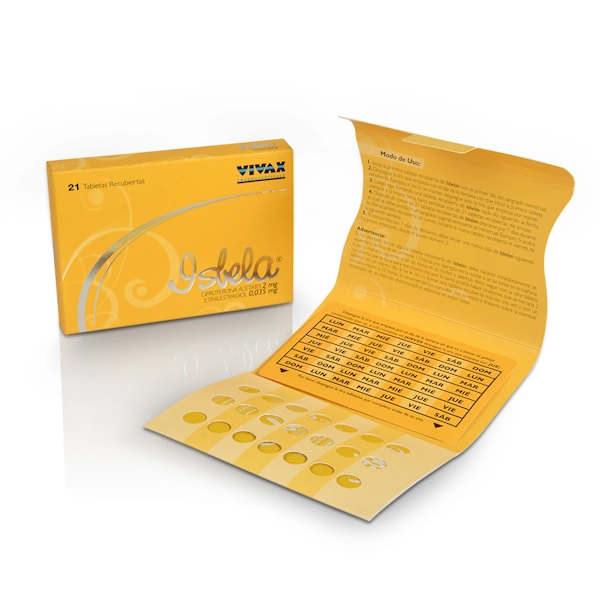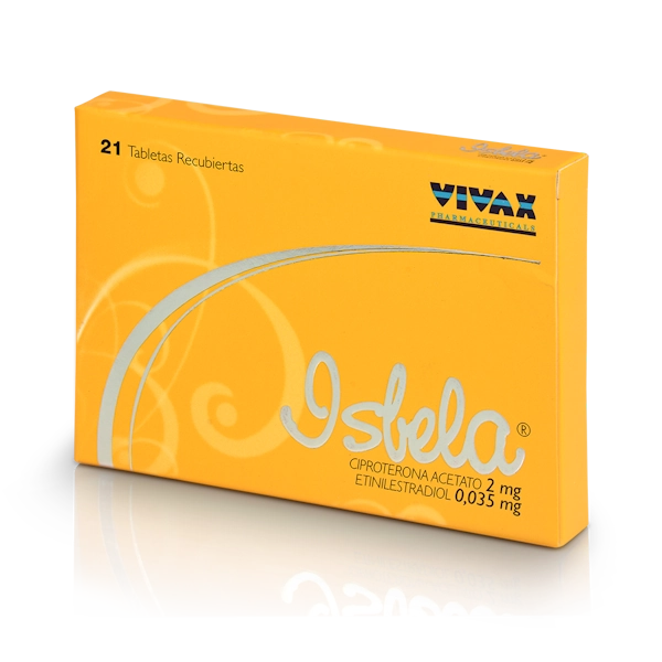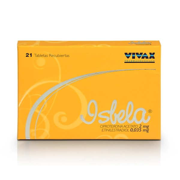 Acetato de ciproterona 2 mg y etinilestradiol 35 mcg una vez al día por 21 días.